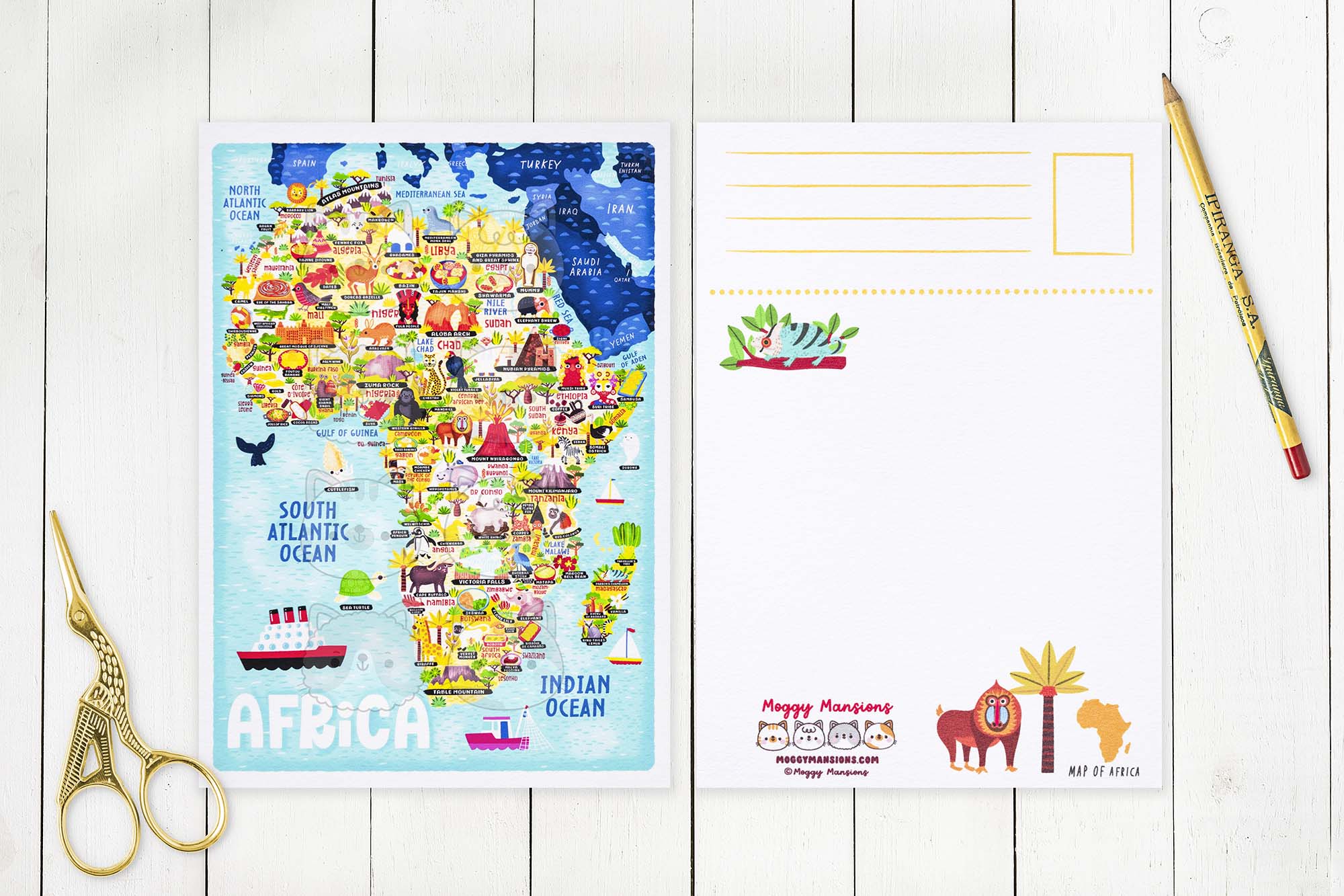 This Africa Map Postcard has been designed and made by myself. There has been no outsourcing, no printing in a foreign country whatsoever. This ensures this product is of the highest quality but also dramatically drops any carbon emissions. My aim is to keep everything as green as possible.