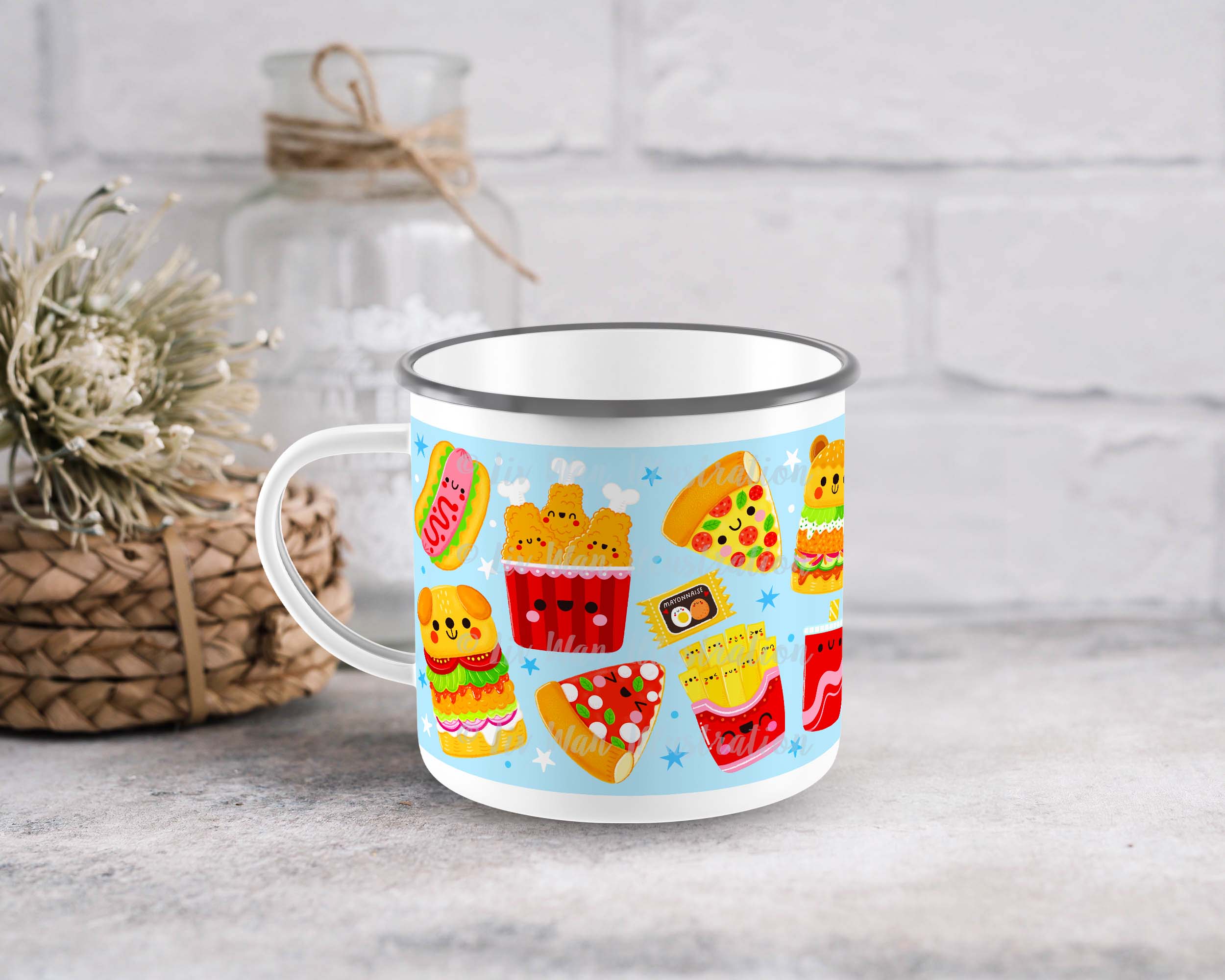 This Fast Food Camping Mug been entirely designed by myself and is hand printed in my own home. This ensures the best colours, contrast and ultimate quality control.