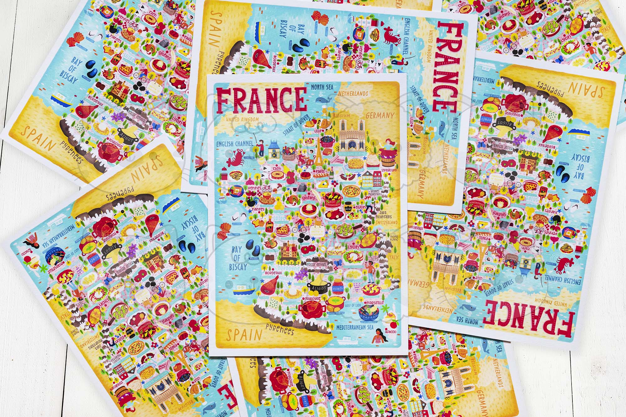 As always I always like my maps to be really colourful and fun. There are lots of different regions, cities and fun things to see and as mentioned above lots of food. This is a really visually striking illustrated map of France.