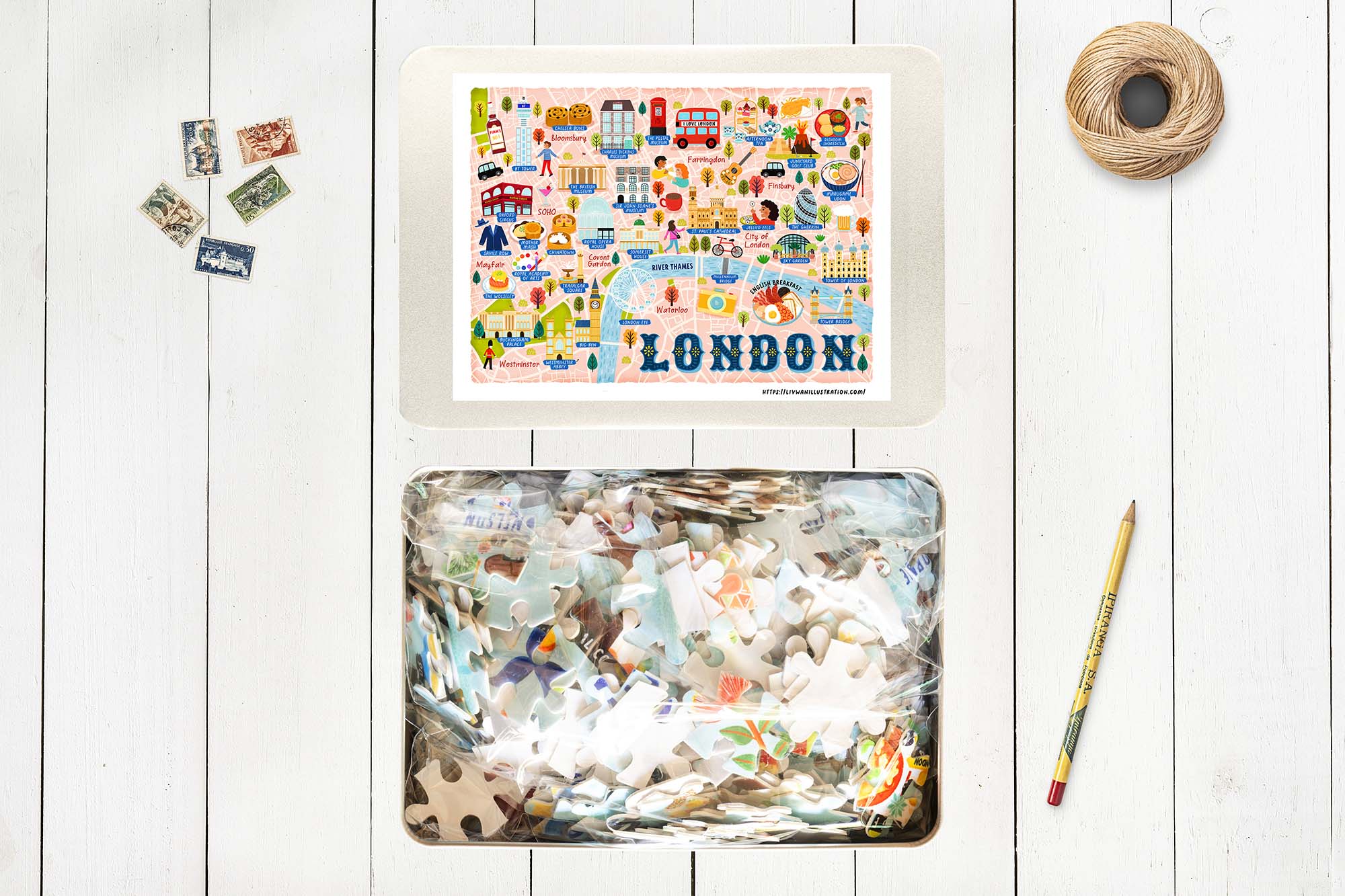 This London Map Jigsaw Puzzle is made from thick satin-finish cardboard and has a really premium feel. It comes supplied in a cute tin box.