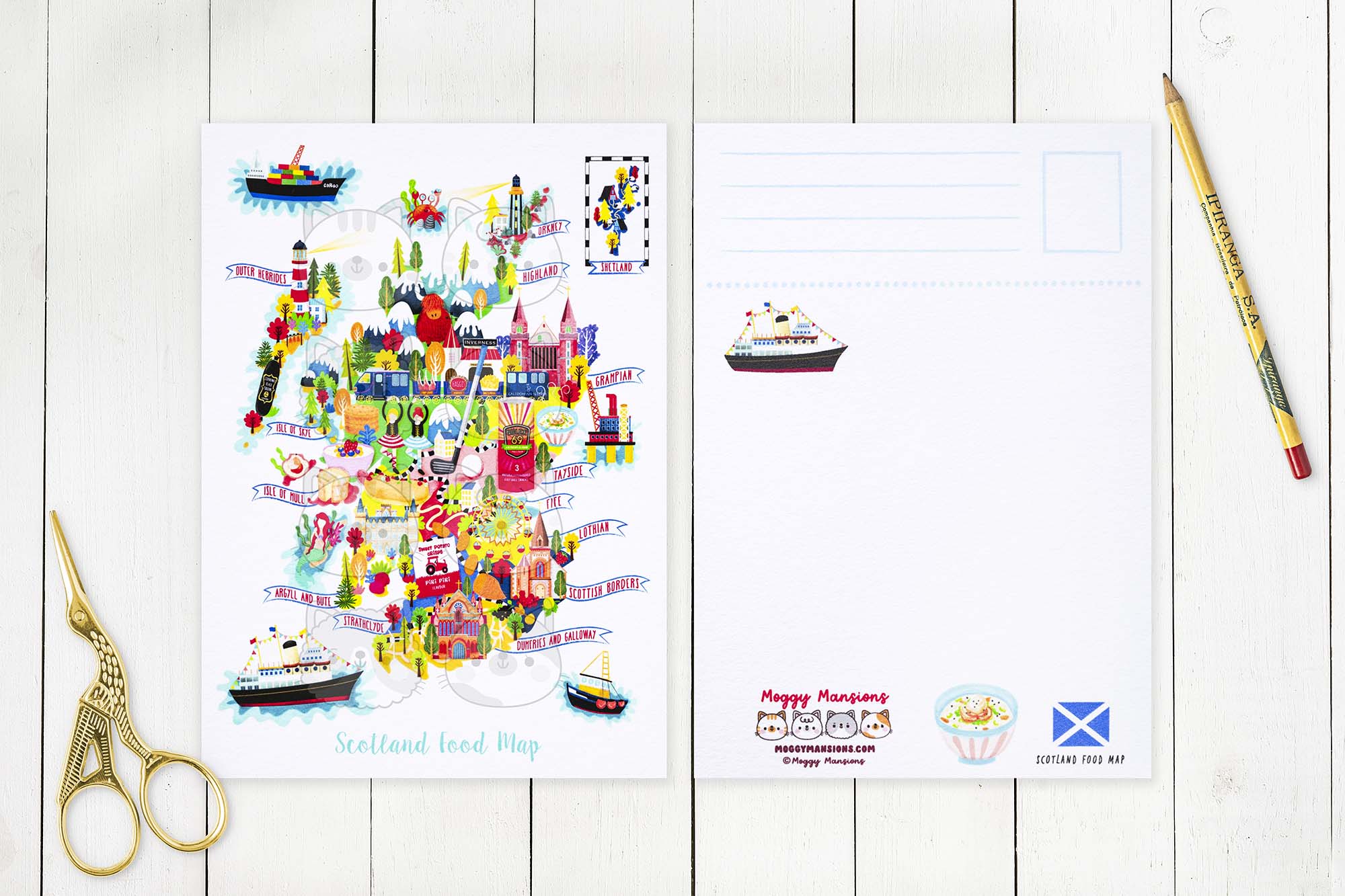 If you are collecting beautiful, unique, and special postcards, this Scotland food map postcard should definitely be added to your collection. I’m now doing a wholesale service, so if you are a retailer and you’re interested in my postcards, prints, or any of the other products I have listed on my website, please contact me anytime.