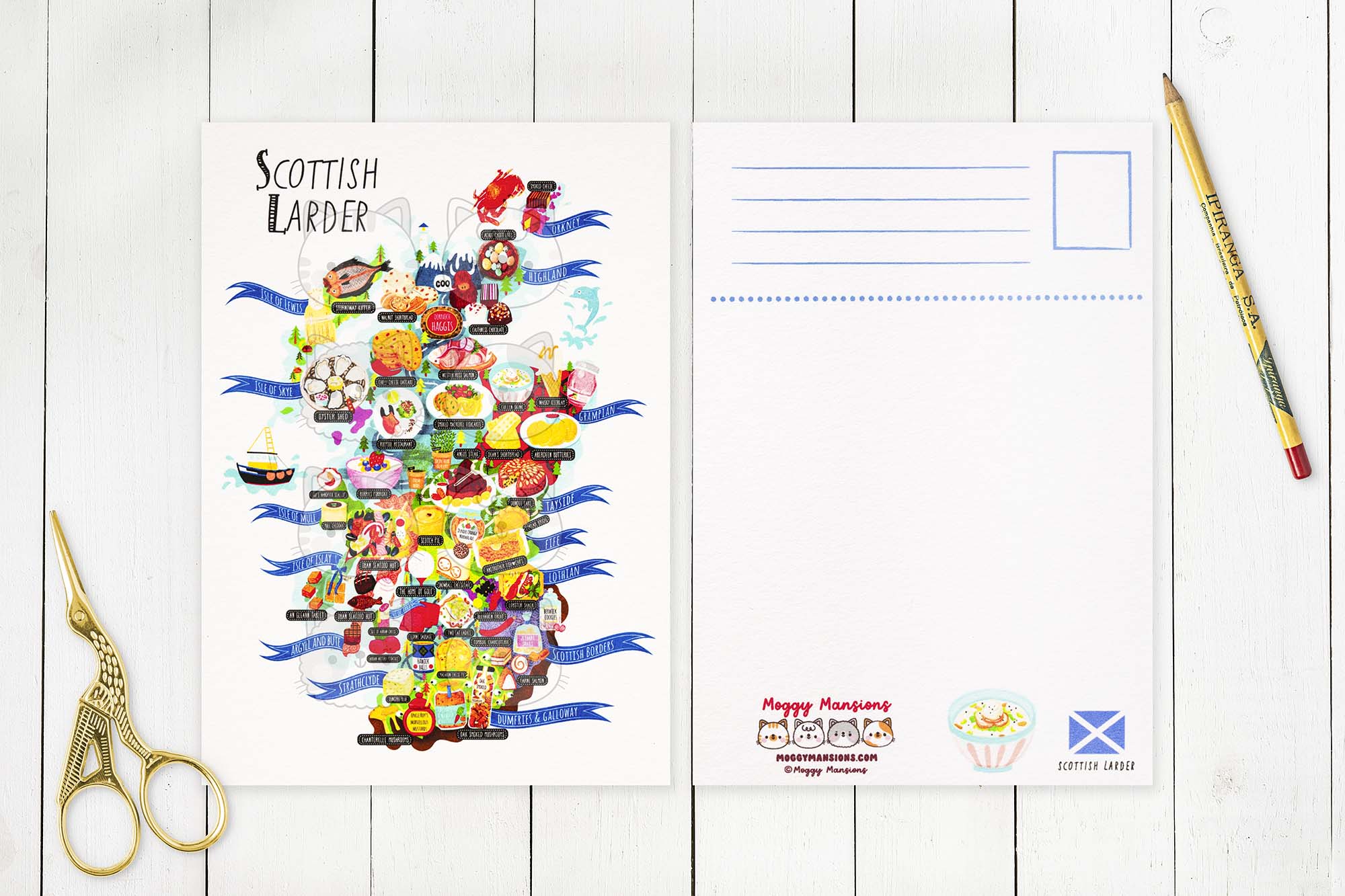 If you are collecting beautiful, unique, and special postcards, this Scottish Larder postcard map illustration should definitely be added to your collection. I’m now doing a wholesale service, so if you are a retailer and you’re interested in my postcards, prints, or any of the other products I have listed on my website, please contact me anytime.