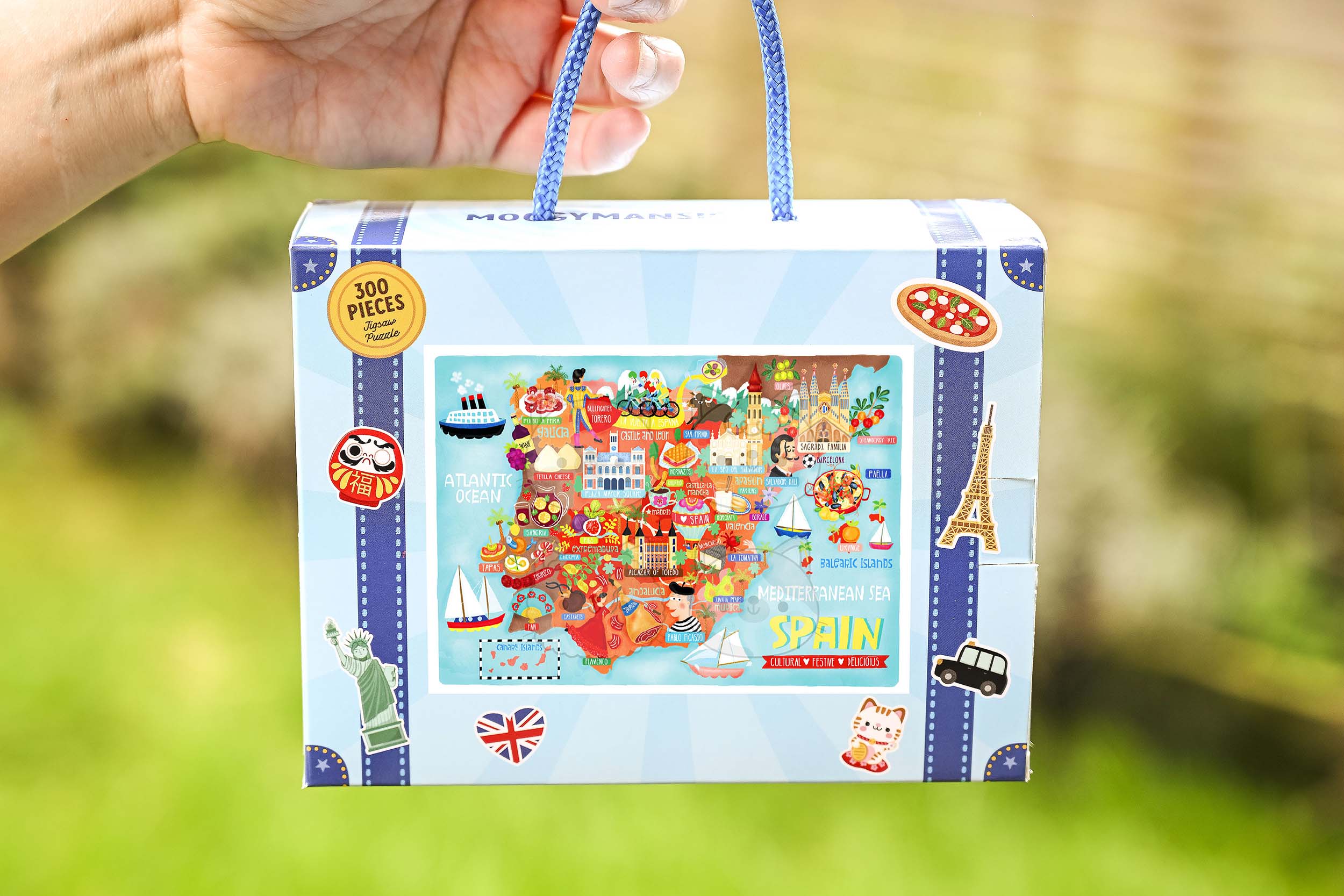 This Spain map puzzle comes supplied in a custom-made box that looks like a suitcase and shows our new branding. As of 2026 all of our products are moving over to our new website; https://moggymansions.com