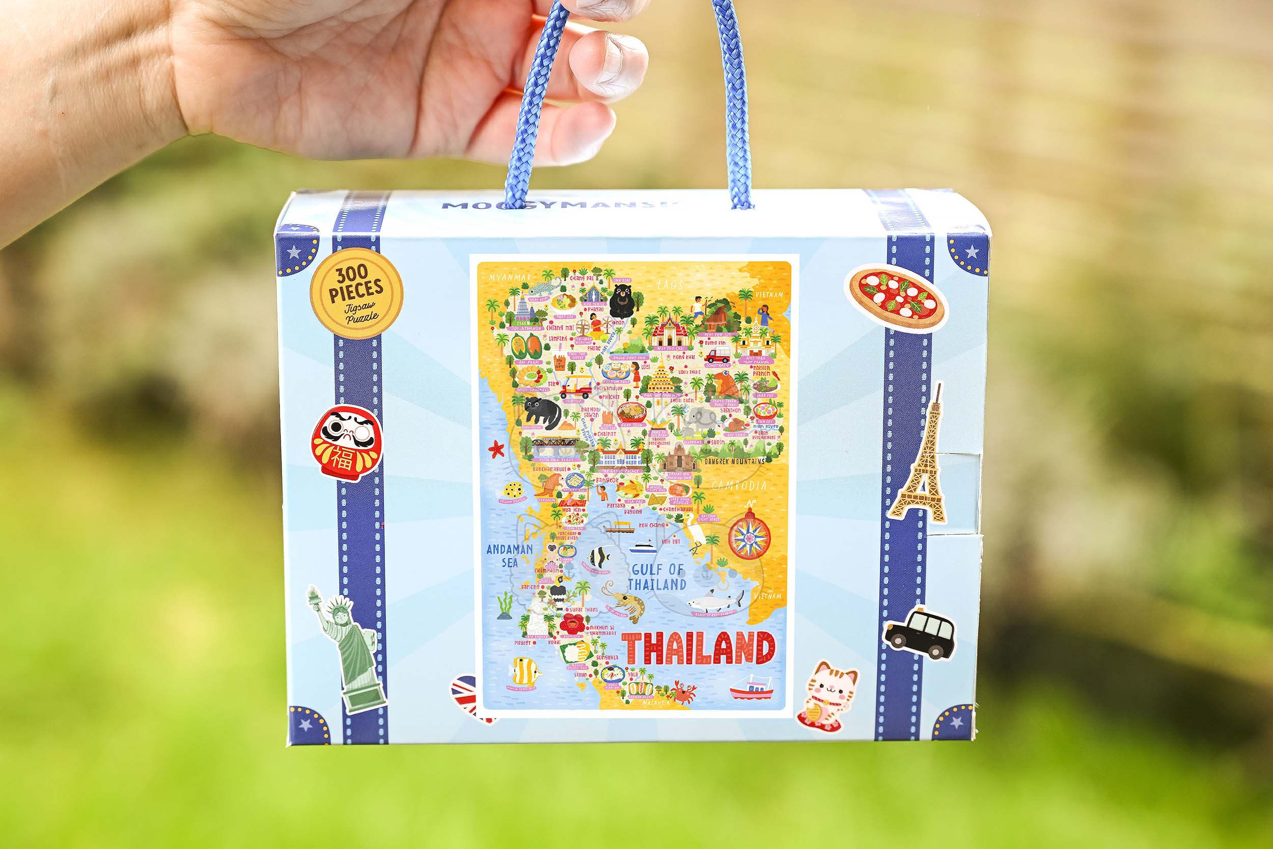 This Thailand map puzzle comes supplied in a custom-made box that looks like a suitcase and shows our new branding. As of 2026 all of our products are moving over to our new website; https://moggymansions.com